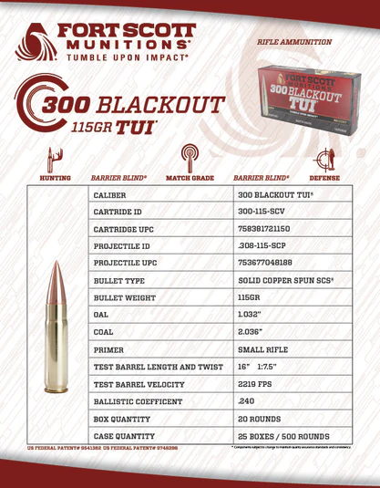 FSM, 300 Blackout, TUI 115Gr Solid Copper Ammo (300-115-SCV)